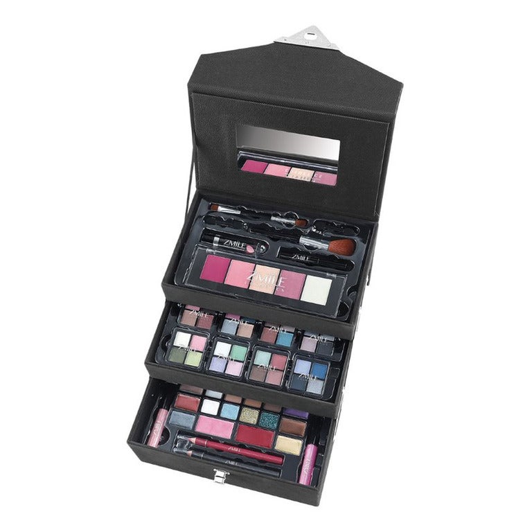 45 x eye shadow 12 x lip gloss 8 x Blush 2 x lipstick 2 x lip gloss 2 x lip liner 10 x Blush Brush Beauty Case